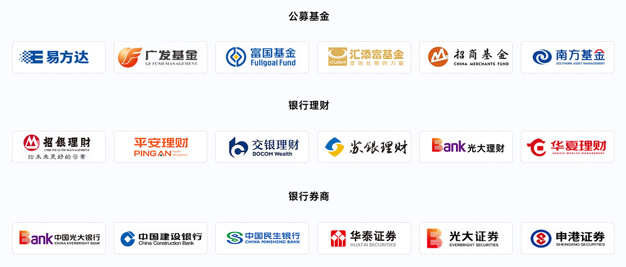 公司已覆盖超过三十家公募基金5家券商资管11家银行理财